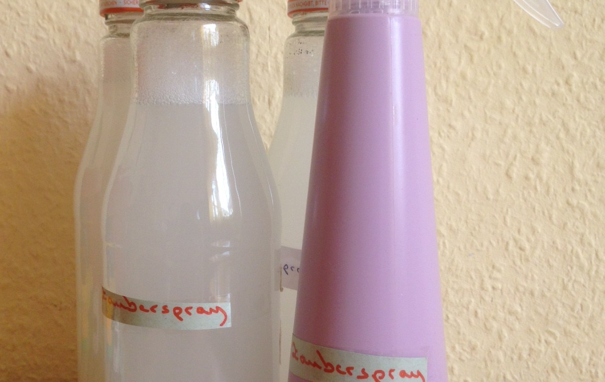 Das Zauberspray hat mich überzeugt, so dass ich heute für Nachschub gesorgt habe. Da das Wasser hier sehr kalkhaltig ist habe ich die Rezeptur ein wenig verändert und mehr Essigessenz genommen.
