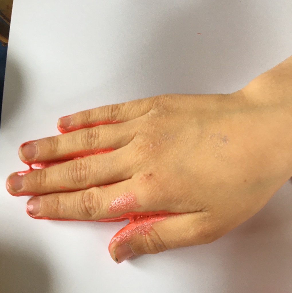 „Man fängt am Daumen an und muss alles anmalen. Auch wenn es furchtbar kitzelt.“
